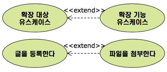 확장 기능 유스케이스에서는 확장 대상 유스케이스 방향으로 점선 화살표를 연결하고 <<extend>>라고 표기한다.