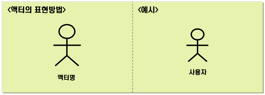 액터 명은 위나 아래에 표시하여 액터의 역할을 작성해야한다.
